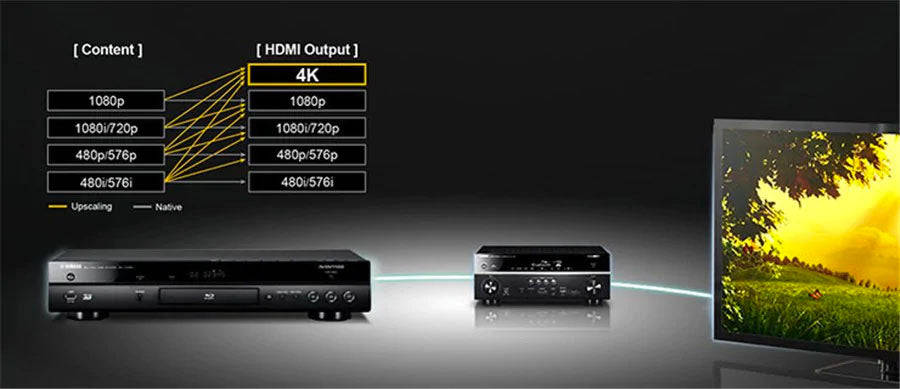 Connectivity | HDMI Output | 480i, 576i, 480p, 576p, 720p, 1080i, 1080p, 1080p@24Hz, 4K (2160p) @24Hz |