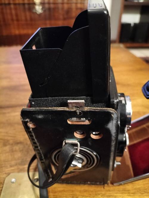 YASHICA-MAT CAMERA, IN IT'S ORIGINAL LEATHER HOUSING.