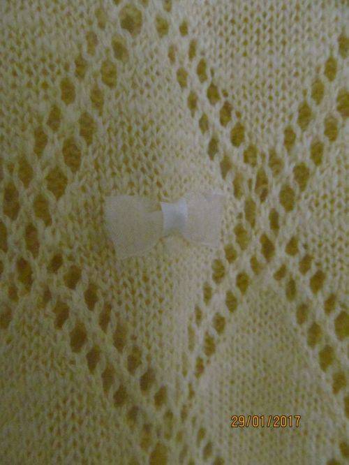 EMSERETTE KNITTED DUCK YELLOW BLOUSE WITH DIAMOND PATTERN AND PRETTY BOWS