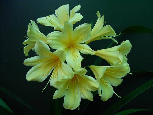 Yellow clivias in flower in the nursery 2011