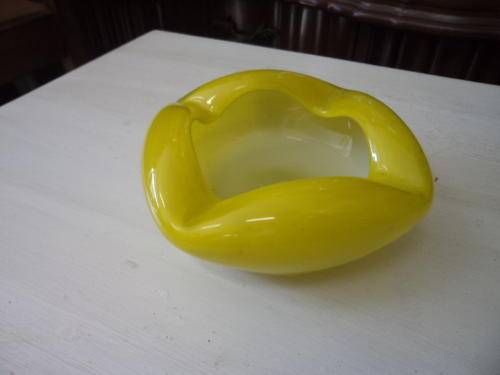 Yellow Curved Glass Ashtray