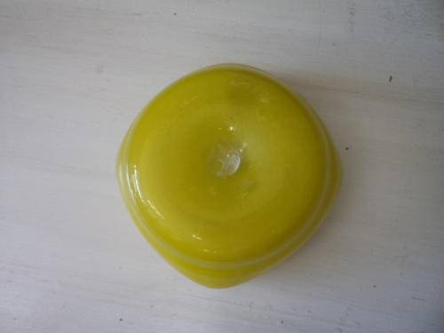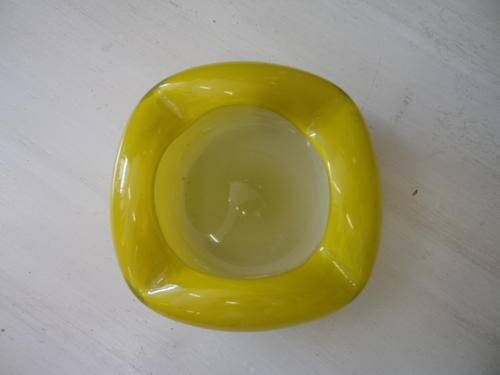 Yellow curved glass ashtray. size: 14cm x 14cm. height 5cm.