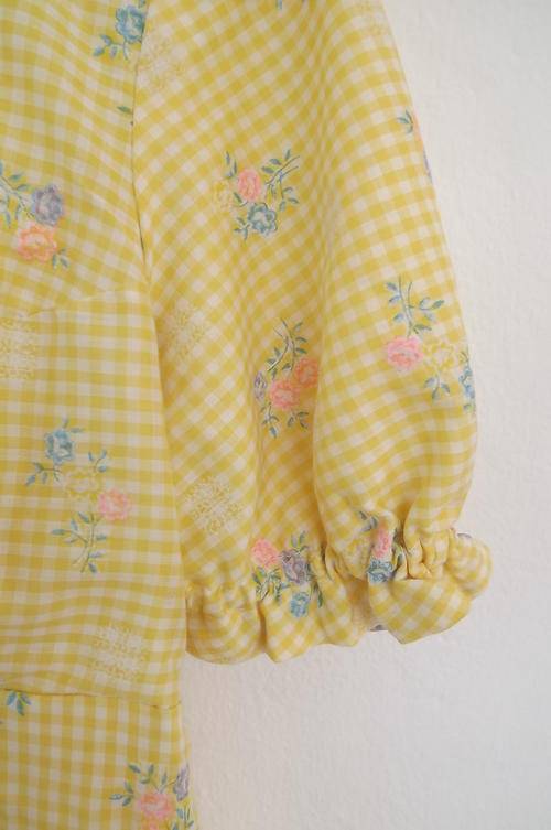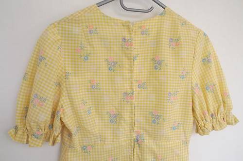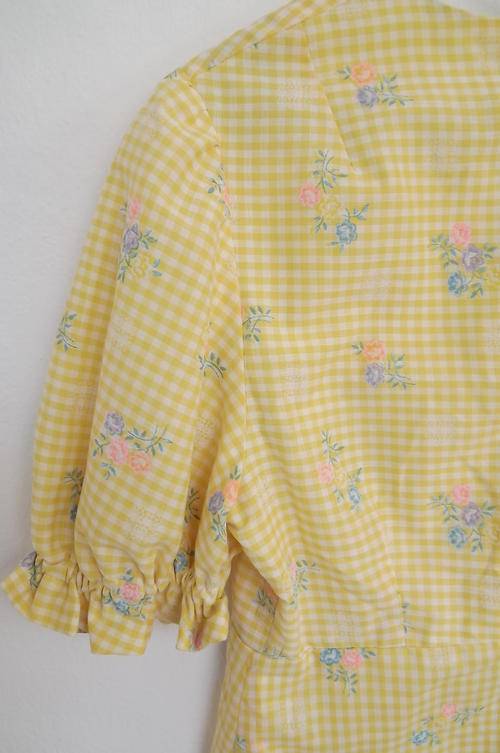Yellow Gingham Fabric Dress with Embroidered Flowers in size 10/34 - Lined - excellent condition