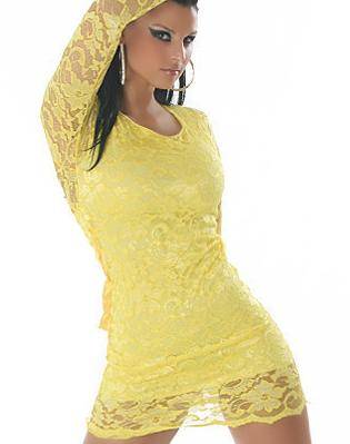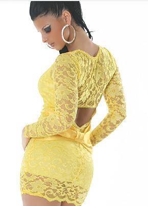 Beautiful Yellow Lace over Acrylic Spandex Bodice and Skirt ... Choose where you would Wear - this Sexy Little Number !