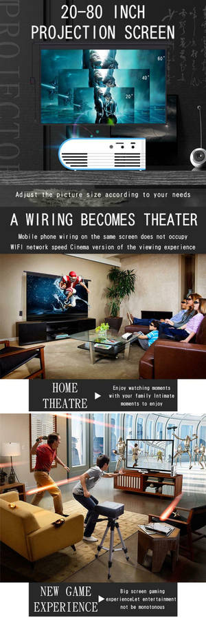 -Mobile phone wireless with the screen, wireless mobile phone screen, the phone screen to enlarge 50 times.(Note: The connection of the mobile phone to the projector requires a display receiver to use.)
