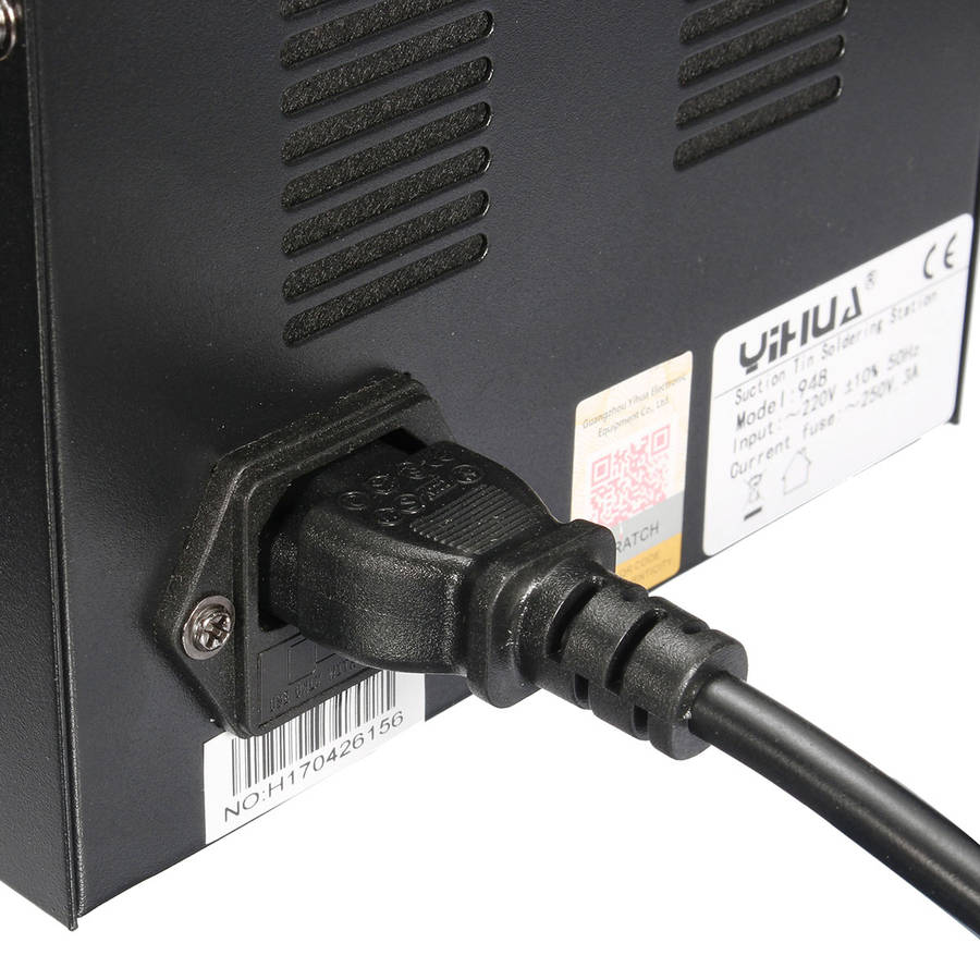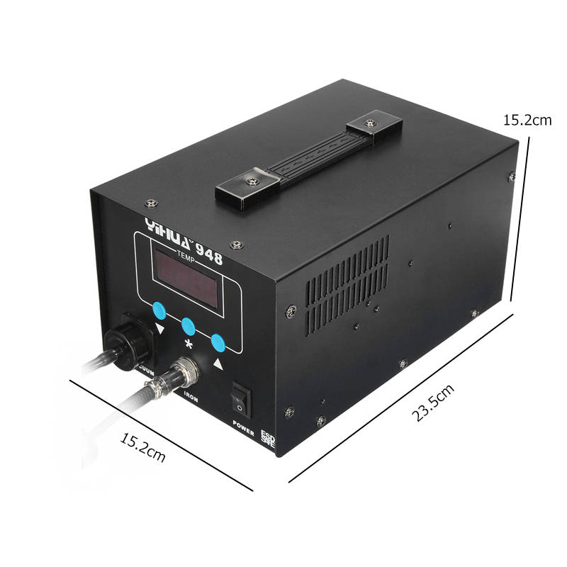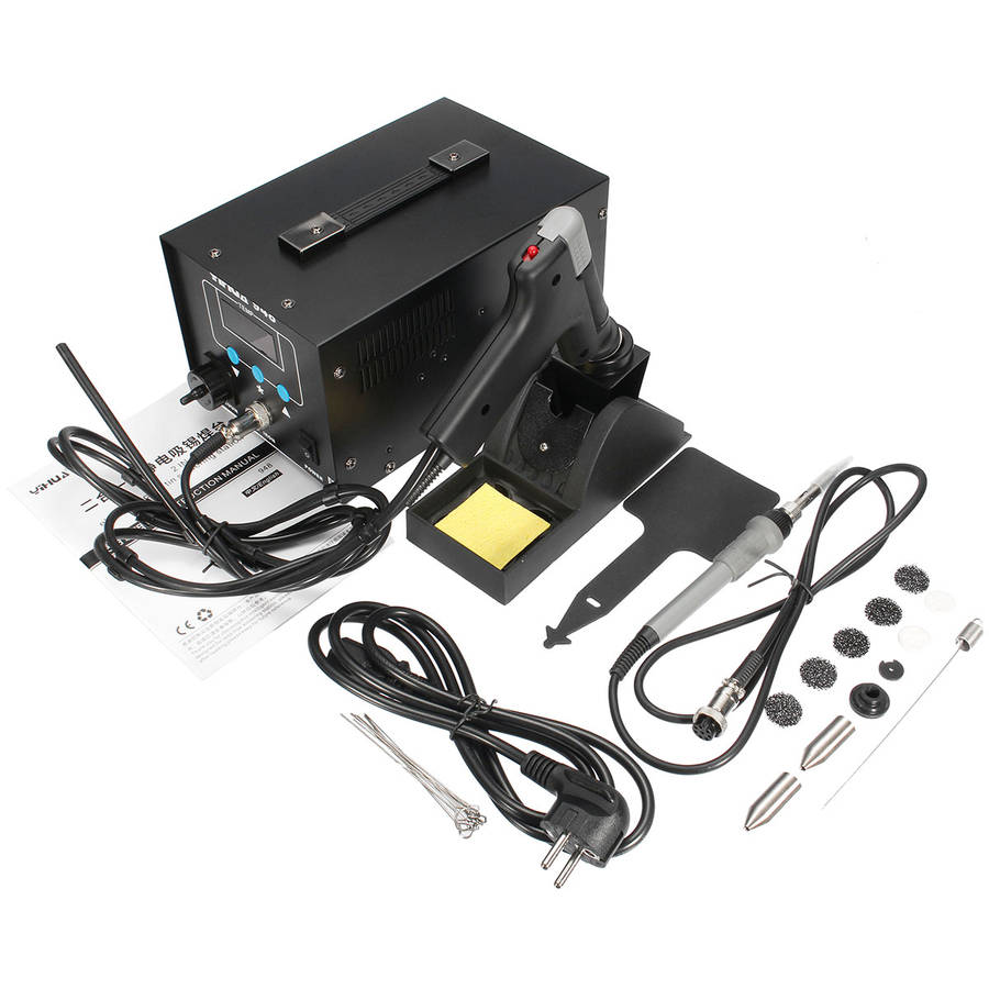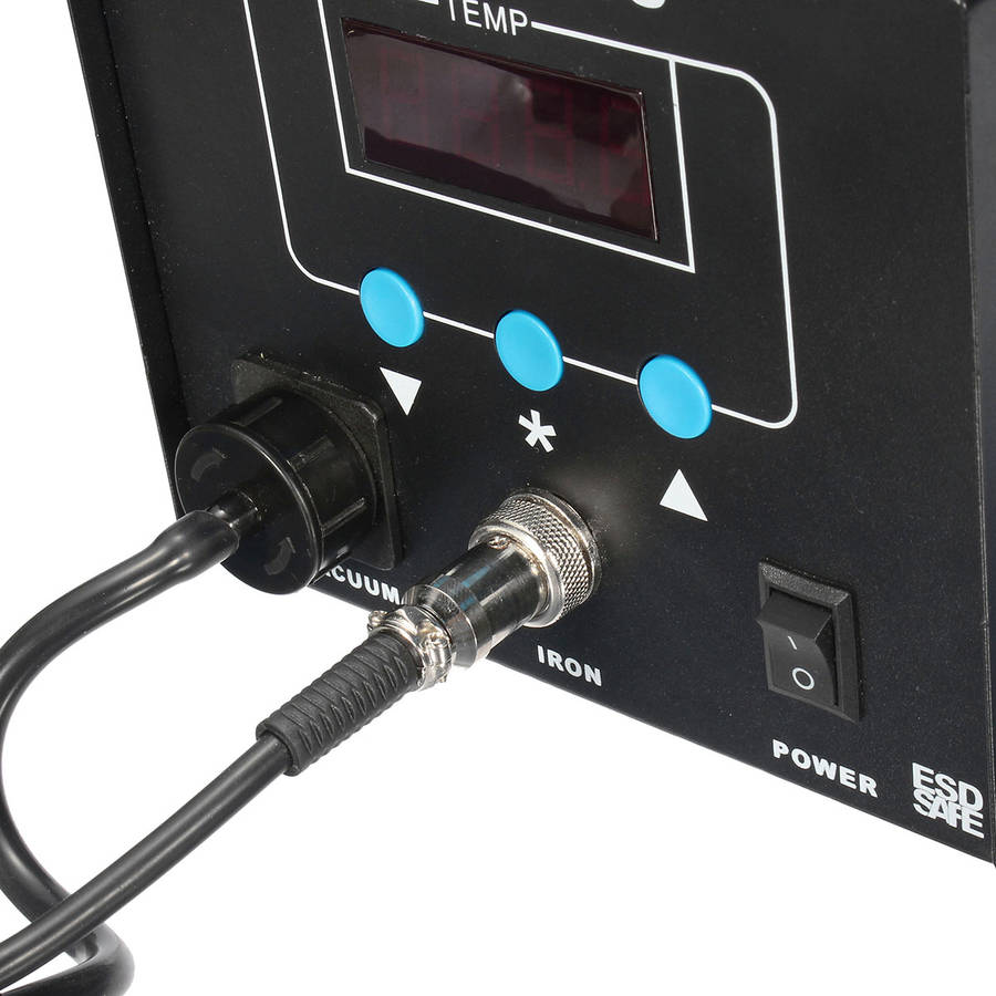 2.With suction tin soldering station and soldering iron function which can intelligent identify and interchange When we need to use the soldering iron remove the suction tin soldering handle ,connected the iron handle It can intelligent identify and read the last time temperature setting parameter of soldering iron .if need to change back to the suction tin soldering station take down the iron handle and connected to suction tin soldering handle ,the machine automatically identify suction tin soldering handle temperature parameters.