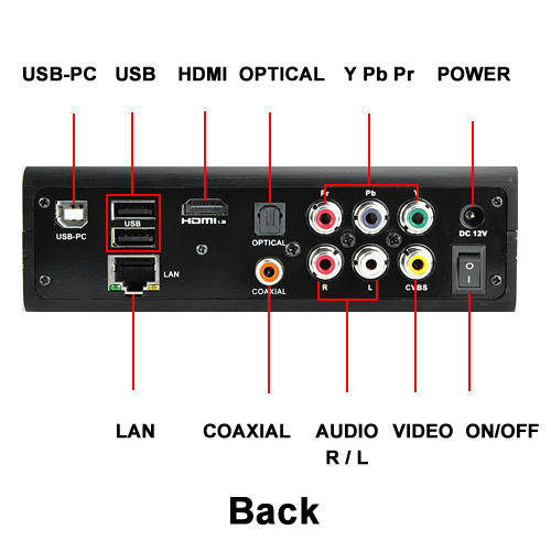This HD multi media player is capable of playing almost every video format you can download or rip from the internet, MTS, TS, TP, MKV, AVI, WMV, MPG, DAT, MOV, VOB, MP4, FLV (just to name a few!). The output is high definition up to 1080p with HDMI. You can also choose AVI, YpbPr and coaxial Spdif connections to match your AV system. With the Youtube Ready 1080P Full HD Media Player you have full access to digital video, audio and photos stored on an installed HDD, USB and SD card and local area network.