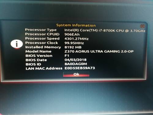 Z370 Aorus MB + Intel i7-8700 3.7GHz + 8GB RAM