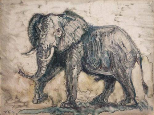 Eloff was a man of the veld, and he was at his most comfortable in wide-open spaces. He was a lecture at Pretoria tech, where he married art student Renee van Zyl. He later moved to Etosha Pan in Namibia, to become a game warden, to escape from the city. The content of Zakkie Eloff’s paintings and etchings reflects his absorption in wild-life and veld.