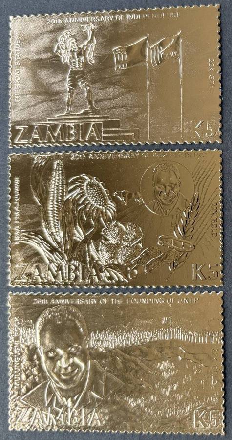 ZAMBIA 1984 Independence Anniversary 5 kwacha set of 3 22K gold foil stamps