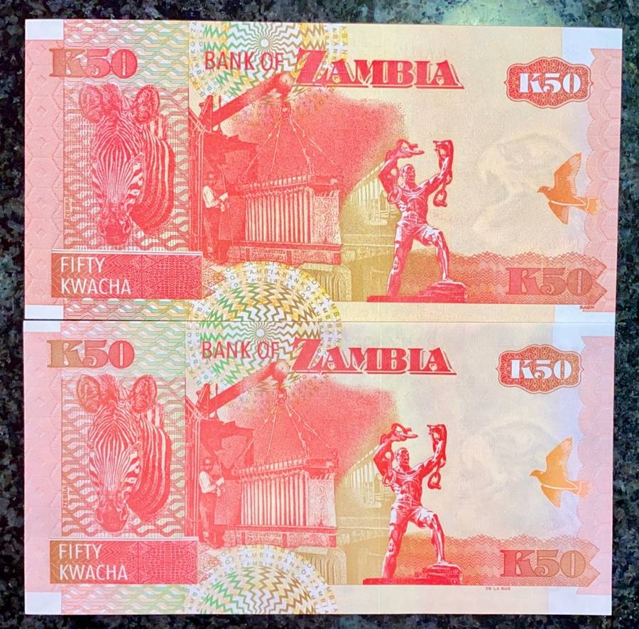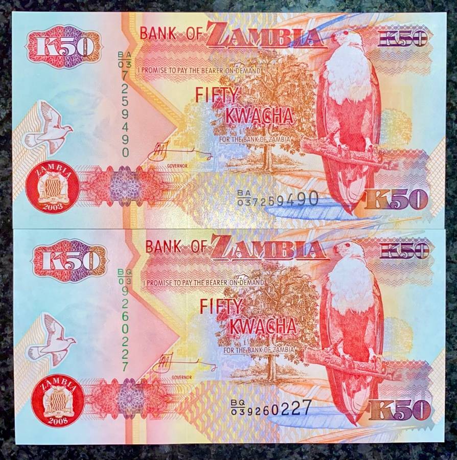 ZAMBIA 50 KWACHA 2003 & 2008 UNC (1 BID TAKES ALL) ZAMBIA 50 KWACHA 2003 & 2008 UNC (1 BID TAKES ALL)