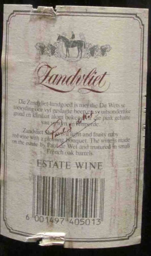 Wine of Origin Robertson = This wine is made on the estate by paul de Wet and maturd in small French Oak Barrels. Red wine.