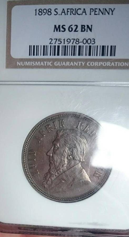 South Africa 1898 penny ms 62 ngc. I struggled to take a good quality photo. The coin is in excellent condition. I combine postage. Please look at my other coins, medallions and jewelry on bidorbuy. Items are posted registered signed for mail. Postage only in South Africa. Please only bid if you intend to pay for the item. Items must be paid within 3 days. Kind regards Christo.
