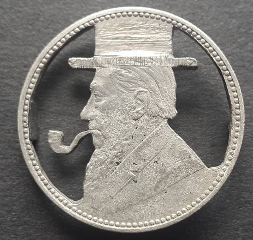 Condition As Per Photos. ZAR 2 1/2 HALF SHILLINGS KRUGER TOP HAT AND PIPE P.O.W. TRENCH ART COIN - BROOCH
