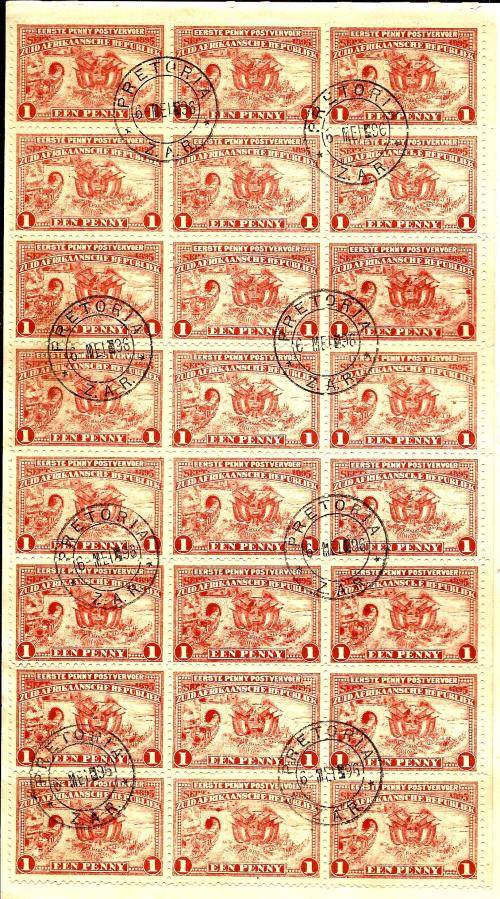 LOVELY USED BLOCK OF 24 STAMPS IN FINE CONDITION, ON PIECE, WITH CLEAR "6 MEI 1886" Z.A.R. CANCELS. COLLECTORS ITEM