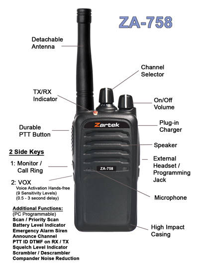 Zartek ZA-748, ZA-725, ZA-705, ZA-708, COM8 & Pro8 Radio (446 MHz)