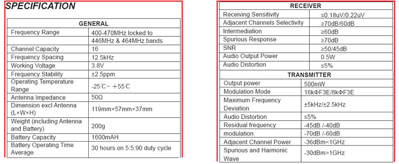 446 MHz (8 Freq.) & 464 MHz (5 Freq.):