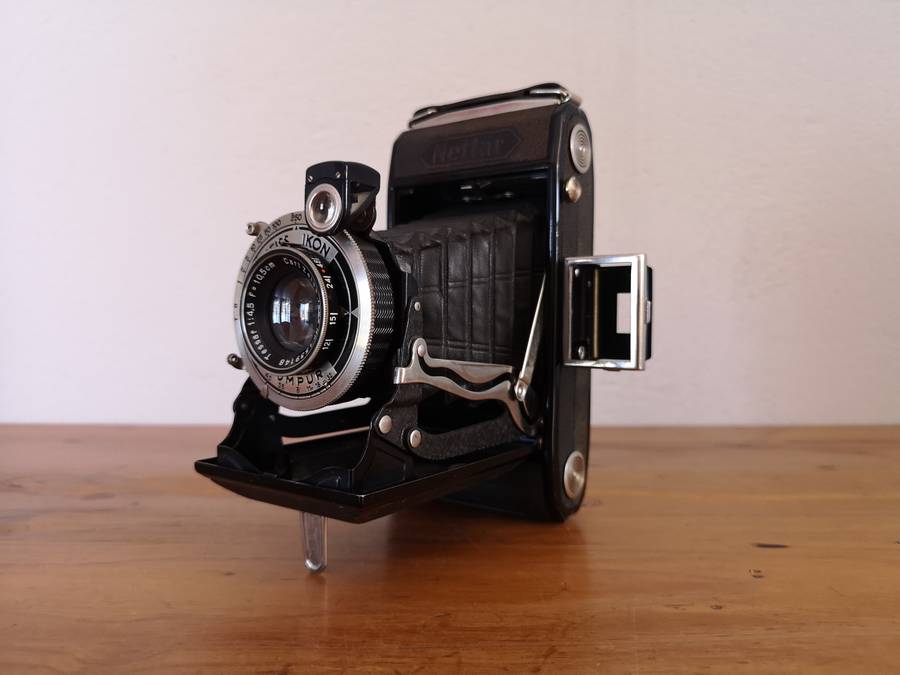 Zeiss Ikon Nettar 515/2 6x9 medium format folding camera in very good condition, 10.5cm f4.5 Tessar lens. Clean lens, shutter fires, aperture blades open and close smoothly, bellows in excellent condition with no cracks or holes.