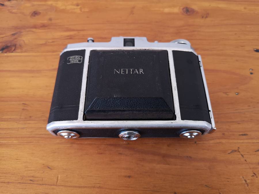 Vintage Zeiss Ikon Nettar 518/16 medium format (6x6) film camera. The shutter is sticking and would need a service before use, the bellows still looks good and free from light leaks.