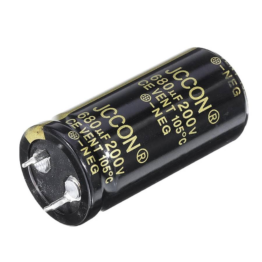 ? Capacitance: 680 uF Voltage: 200 V Max Temperature: 105?ᆪ Color:? Black Gold Diameter: 22 mm Height: 45 mm Type:Through Hole ? Safe & Reliable: