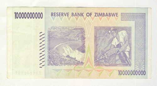 Zimbabwe 10 billion dollars banknote with number ZA0001898