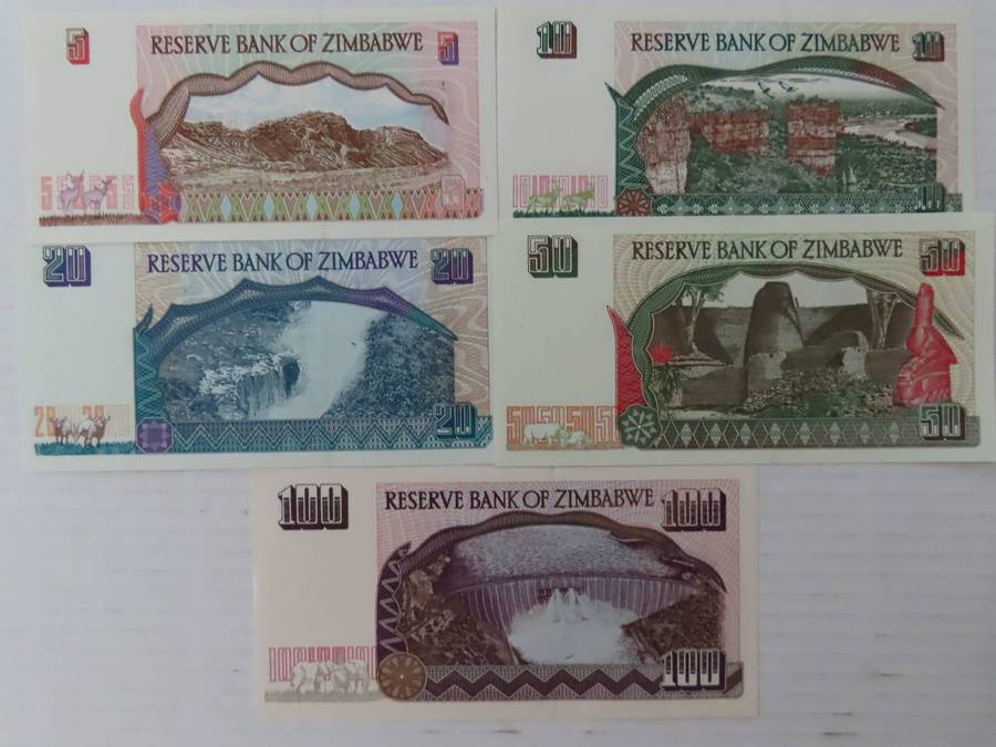 Here we have Zimbabwe - 1994- 1997 - 5, 10, 20, 50 and 100 Dollars UNC
