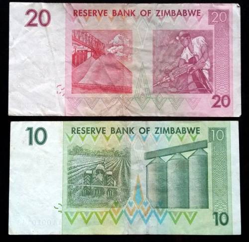 ZIMBABWE 2007 10 + 20 DOLLARS (2 NOTES)