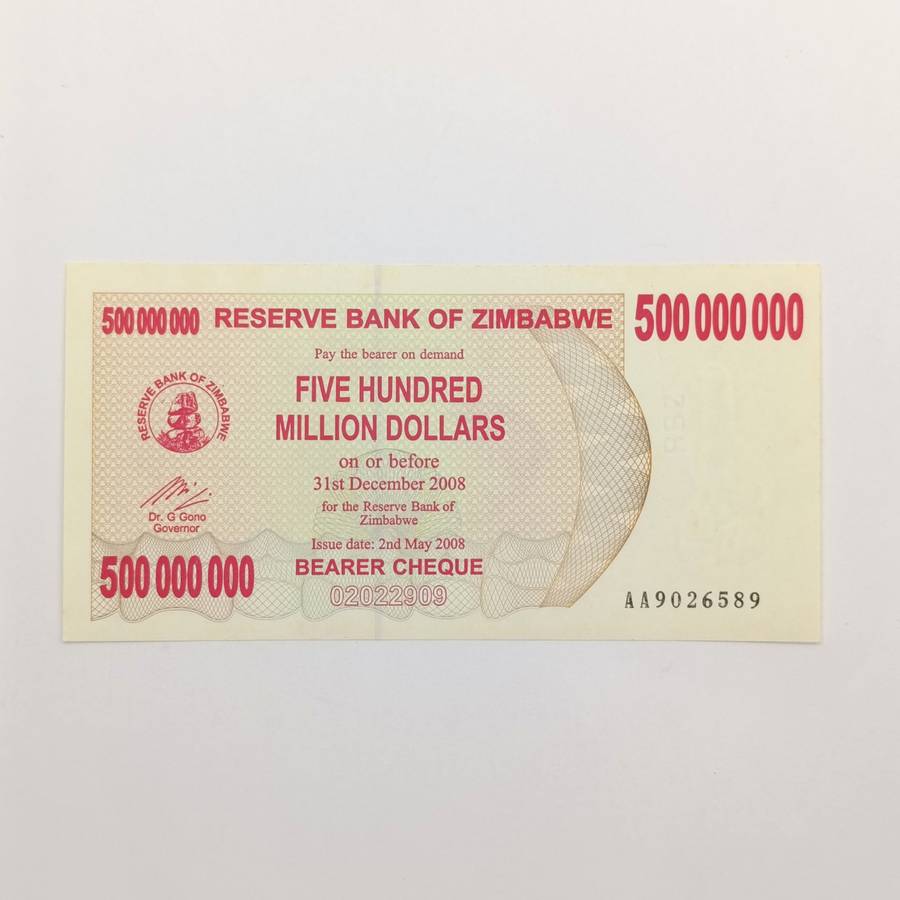 Zimbabwe 500 Million Bearer cheque issued 2nd May 2008 consecutive numbered lot of 3 banknotes Zimbabwe 500 Million Bearer cheque issued 2nd May 2008 consecutive numbered lot of 3 banknotes Zimbabwe 500 Million Bearer cheque issued 2nd May 2008 consecutive numbered lot of 3 banknotes Zimbabwe 500 Million Bearer cheque issued 2nd May 2008 consecutive numbered lot of 3 banknotes Zimbabwe 500 Million Bearer cheque issued 2nd May 2008 consecutive numbered lot of 3 banknotes Zimbabwe 500 Million Bearer cheque issued 2nd May 2008 consecutive numbered lot of 3 banknotes