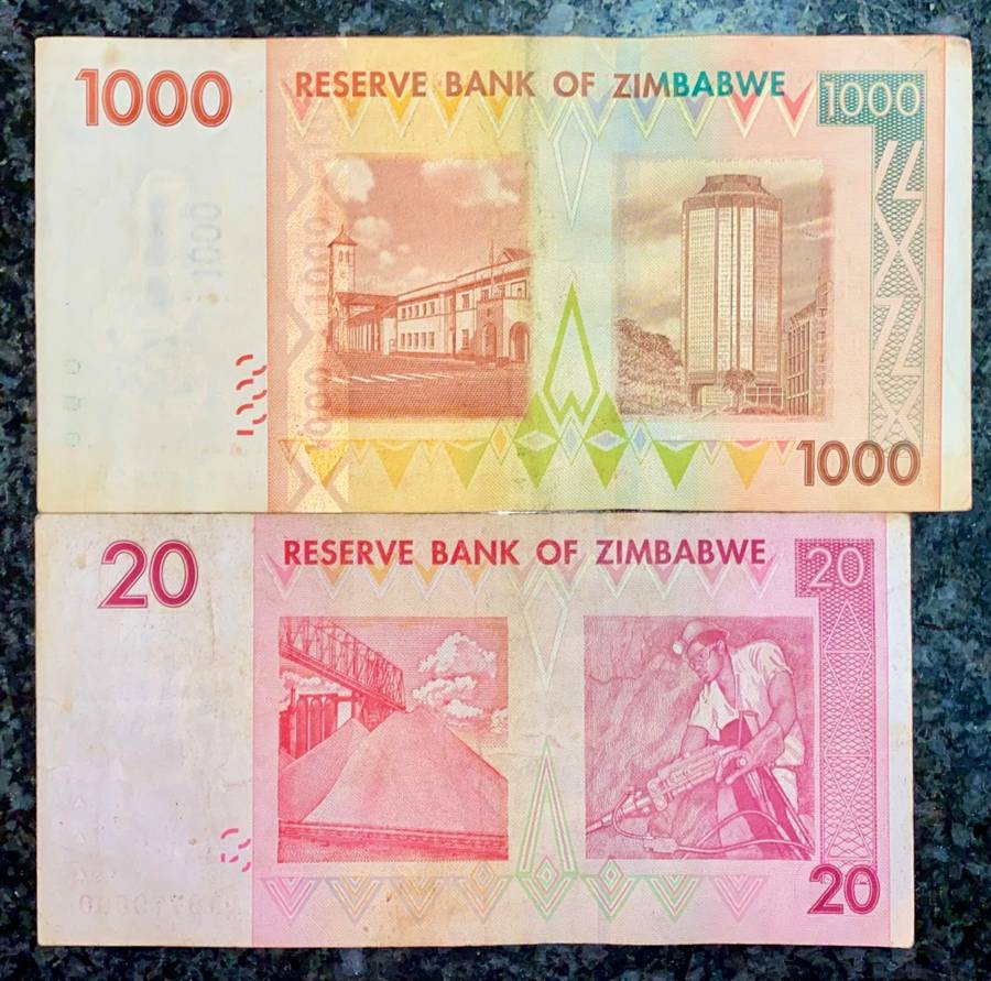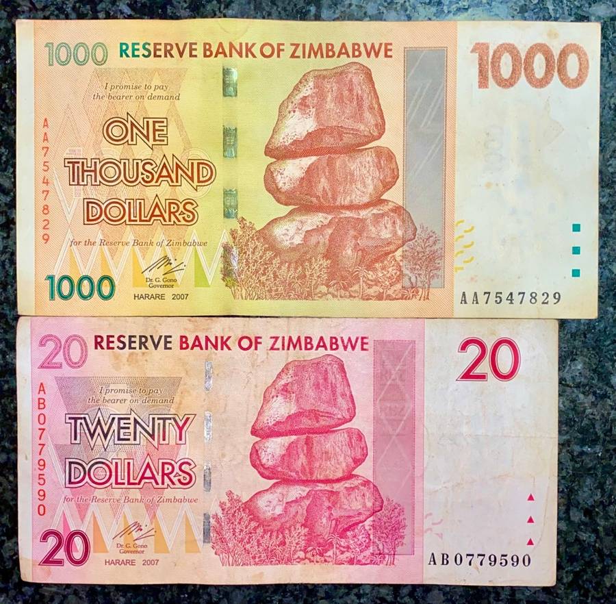 ZIMBABWE SET 1000 DOLLARS & 20 DOLLARS - HARARE 2007 (1 BID TAKES ALL)