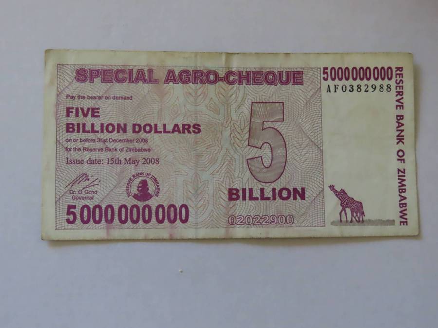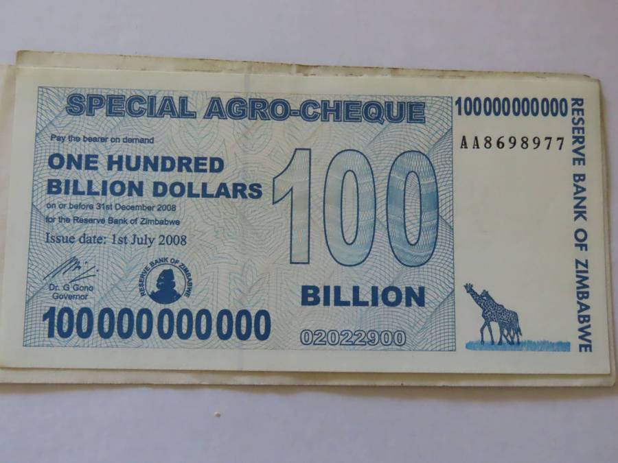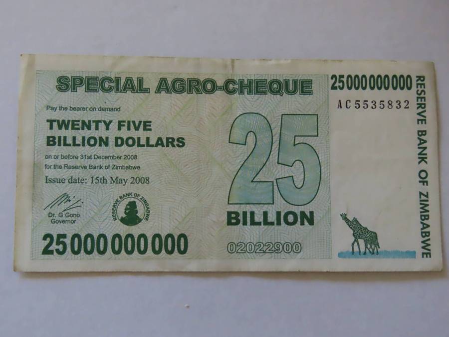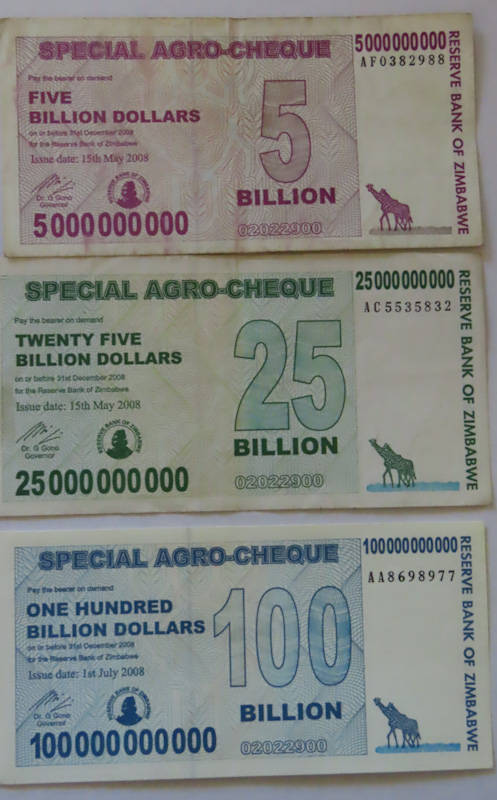 Here we have Zimbabwe - Special Agro-Cheques 5, 25 and 100 Billion Dollar Notes