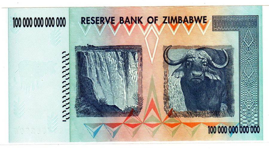 Zimbabwean  dollar 100 trillion dollars UNC notes
