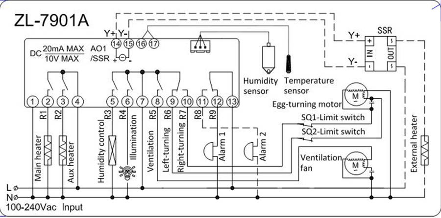 | Egg turning relay | 250VAC/1A resistive load |
