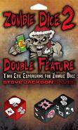If you love zombies, you love zombie movies . . . and Zombie Dice! So here it is: Zombie Dice 2 – Double Feature! Three new dice give you three new ways to play. For the Big Summer Action Movie, you've got the two Heroes: the Hunk and the Hottie. He's got a double-shotgun icon, but if you eat his brain, you score double. The Hottie has two shotguns and three feet icons, making her fast AND dangerous. For Santa Claus Meets the Zombies, you guessed it: Santa Claus is coming to town! He has three special gift icons – a helmet, an energy drink, and a double brain! Or, of course, you could eat Santa's brain. It's a very merry undead Christmas! Three new ways to eat brains, and they're all in Zombie Dice 2 – Double Feature. This is an expansion you need Zombie Dice in order to play this. | ||||||