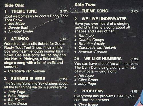 ZOOTS ROOTY TOOT TOOT SHOW - 12" Vinyl 1981 (SONGS FOR CHILDREN)