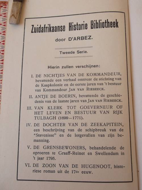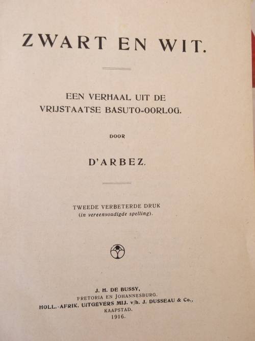 D'Arbez is die skuilnaam van J F van Oordt, 1856 - 1918, destyds 'n belangrike oorgangsfiguur tussen die Eerste en Tweede Afrikaanse Taalbewegings. Geskryf in vereenvoudigde oorgangs-Hollands wat dit lekkerlees boeke maak. Absoluut versamelbare Afrikana.