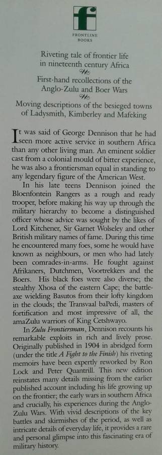 Zulu Frontiersman by Major G G Dennison edited by Ron Lock & Peter Quantrill